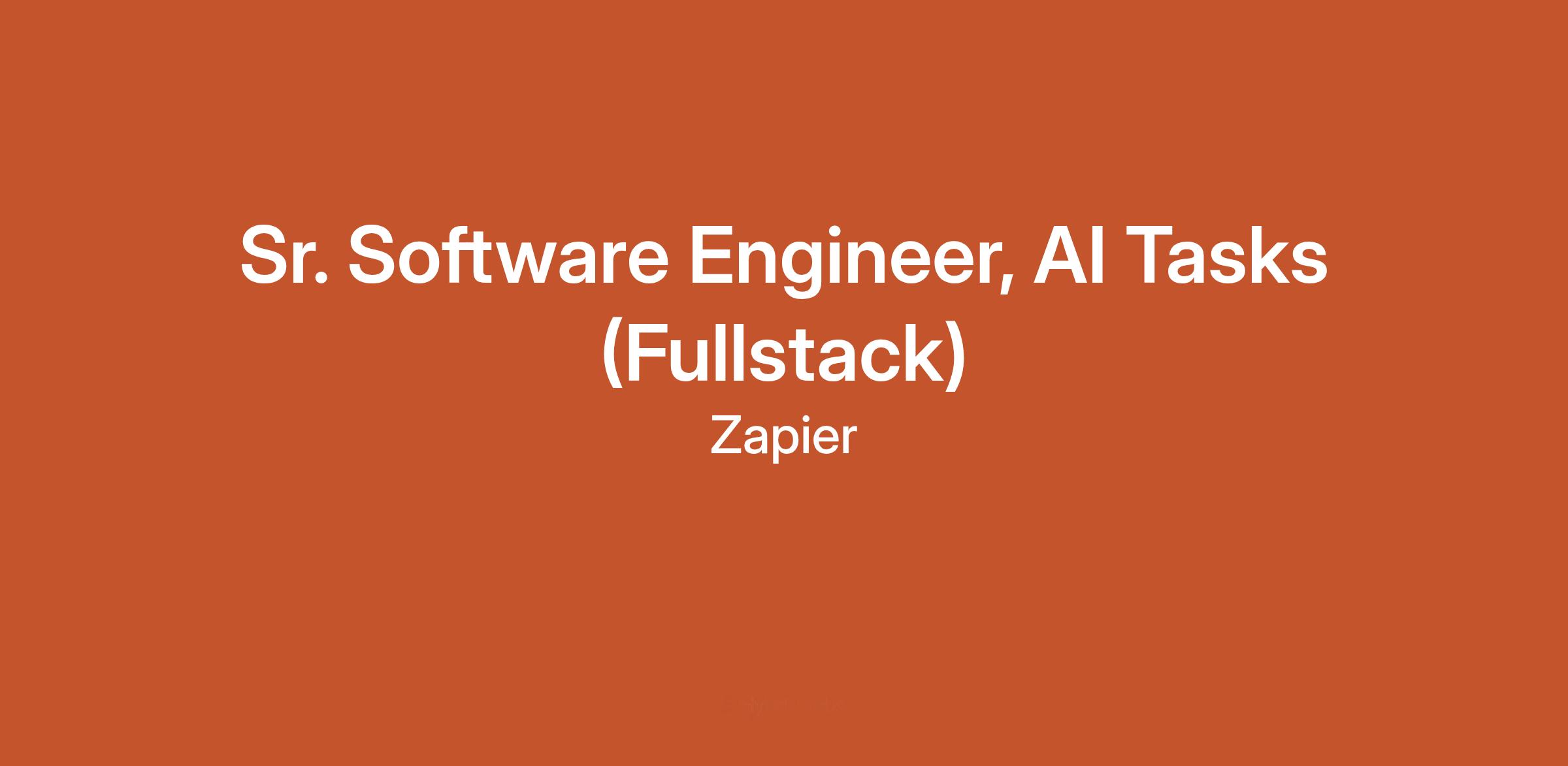 AI at Zapier At Zapier , we build and use automation every day to make work more efficient, creative, and human. So if you’re using AI tools while applying here - that’s great! We just ask that you use them responsibly and transparently . Check out our guidance on How to Collaborate with AI During Zapier’s Hiring Process , including how to use AI tools like ChatGPT, Claude, Gemini, or others during our hiring process - and when not to. Hi there! Join Zapier’s new AI Tasks team , where you’ll own the core AI surfaces that make our customers’ workflows smarter—shipping and scaling products like AI by Zapier and Human in the Loop that thousands rely on to extract, classify, summarize, and safely approve actions in production automations. You’ll partner across our AI Orchestration portfolio (Agents, Chatbots, Copilot, and platform capabilities) to design elegant, reliable AI execution patterns at scale—reducing friction, raising quality, and turning complex AI into approachable building blocks for real businesses. We’re hiring Senior Full Stack Engineers (both frontend and backend leaning) to help invest in taking these surface areas to the next level. You’ll collaborate closely with AI experts, product managers, designers, and platform engineers to bring LLM-native workflows to life — with users and usability always at the center. If you’re excited about building real-world applications of AI (not just demos), working across the stack, and shaping the future of autonomous agents in automation — we’d love to hear from you. Zapier Agents is a new and fast-moving product at the intersection of AI, automation, and product-led growth. In this role, you’ll: Design and build features that allow users to delegate tasks and orchestrate workflows using natural language Collaborate with our platform team that manages agent memory, reasoning, execution, and system integrations Build and refine user-facing features and interfaces for initiating, monitoring, and guiding agent behavior Collaborate with AI and platform teams to connect Zapier Agents with core orchestration infrastructure Own projects end-to-end — from scoping and architecture to implementation, testing, and support Improve developer experience, observability, and deployment pipelines as the product matures In this role, you’ll: Design and build features that allow users to delegate tasks and orchestrate workflows using natural language Contribute to backend systems that manage agent memory, reasoning, execution, and system integrations Build and refine user-facing features and interfaces for initiating, monitoring, and guiding agent behavior Collaborate with AI and platform teams to connect Zapier Agents with core orchestration infrastructure Own projects end-to-end — from scoping and architecture to implementation, testing, and support Improve developer experience, observability, and deployment pipelines as the product matures Our Commitment to Applicants Culture and Values at Zapier Zapier Guide to Remote Work Zapier Code of Conduct Diversity and Inclusivity at Zapier High Visibility, High Impact If you thrive on building complex systems that are easy to use and hard to break, this zone is for you: Work on foundational systems used by millions Help users build smarter, more powerful automations Contribute to new AI-native experiences Collaborate with cross-functional teams across Product, Design, and Support Join a high-ownership environment with clear user impact and fast iteration About You We’re looking for experienced engineers who bring: For backend-leaning Full Stack roles: Strong backend experience with Python/Django building reliable, scalable, and observable services. Experience with TypeScript/Node.js is a bonus, but not required. For frontend-leaning Full Stack roles: Advanced experience with React (and ideally frameworks like Next.js); you’re confident working across the stack and delivering cohesive user experiences Experience architecting, building, debugging and operating distributed systems at scale is a benefit to candidates, but not essential. Familiarity with AWS primitives, including S3, SQS, Lambda, RDS, etc. Familiarity with relational databases like PostgreSQL or MySQL, and the ability to model, query, and optimize data effectively Experience designing and consuming RESTful APIs, building event-driven systems, and working with data integrations across services Proven ability to lead complex technical projects—owning design decisions, balancing tradeoffs, and guiding implementation across multiple contributors You proactively coach and support teammates, foster growth through mentorship, and contribute to a culture of feedback and continuous improvement You navigate ambiguity with confidence—able to clarify priorities, align stakeholders, and drive toward meaningful outcomes even when goals shift You’ve used AI tooling for work or personal use. You explore new tools, workflows, and ideas to make things more efficient, and are eager to deepen your understanding of AI and use it regularly. How to Apply At Zapier, we believe that diverse perspectives and experiences make us better, which is why we have a non-standard application process designed to promote inclusion and equity. We're looking for the best fit for each of our roles, regardless of the type of companies in your background, so we encourage you to apply even if your skills and experiences don’t exactly match the job description. All we ask is that you answer a few in-depth questions in our application that would typically be asked at the start of an interview process. This helps speed things up by letting us get to know you and your skillset a bit better right out of the gate. Please be sure to answer each question; the resume and CV fields are optional. Education is not a requirement for our roles; however, if you receive an offer, you will need to include your most recent educational experience as part of o